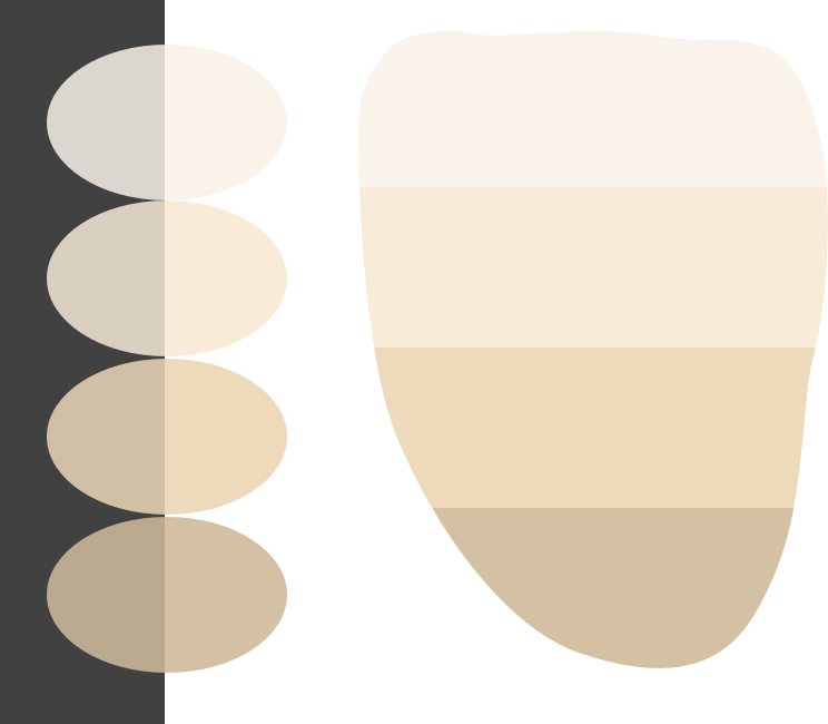 A translucidez é gradualmente reduzida da região incisal para a região cervical para aumentar o nível de mascaramento na região cervical.